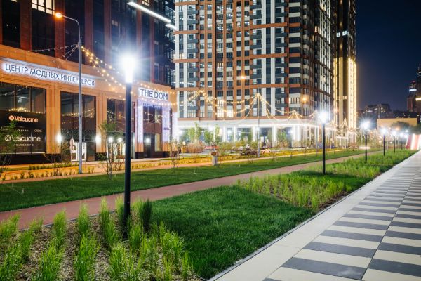 Его сады, где время замедляется, — место спокойствия и уединения. А оживленные внутренние улицы позволяют быстро получить нужную услугу. Здесь расположены детский центр, спортивный комплекс, работают кафе, рестораны и другие заведения для резидентов Slava и жителей района.